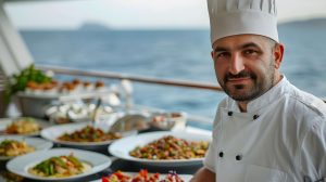 Ship’s Cooks prepare a range of tasty, healthy meals for the entire crew. They are responsible for food procurement and food supply management. In addition to directing and participating in the preparation and serving of meals, the chief cook determines timing and sequence of operations required to meet serving times; inspects galley and equipment for cleanliness; and oversees proper storage and preparation of food. The cook may plan or assist in planning meals and taking inventory of stores and equipment. A chief cook’s duties may overlap with those of the steward’s assistant, the chief steward, and other steward’s department crewmembers.